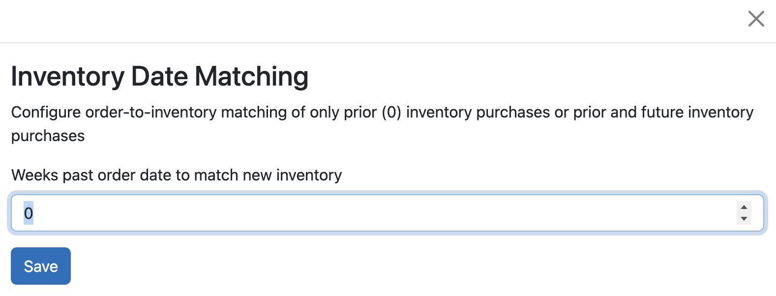 Click the pencil/edit icon to the right of the "Orders to Purchase Date Matching" option and enter how far back you'd like Seller Ledger to match inventory purchases to sales.
